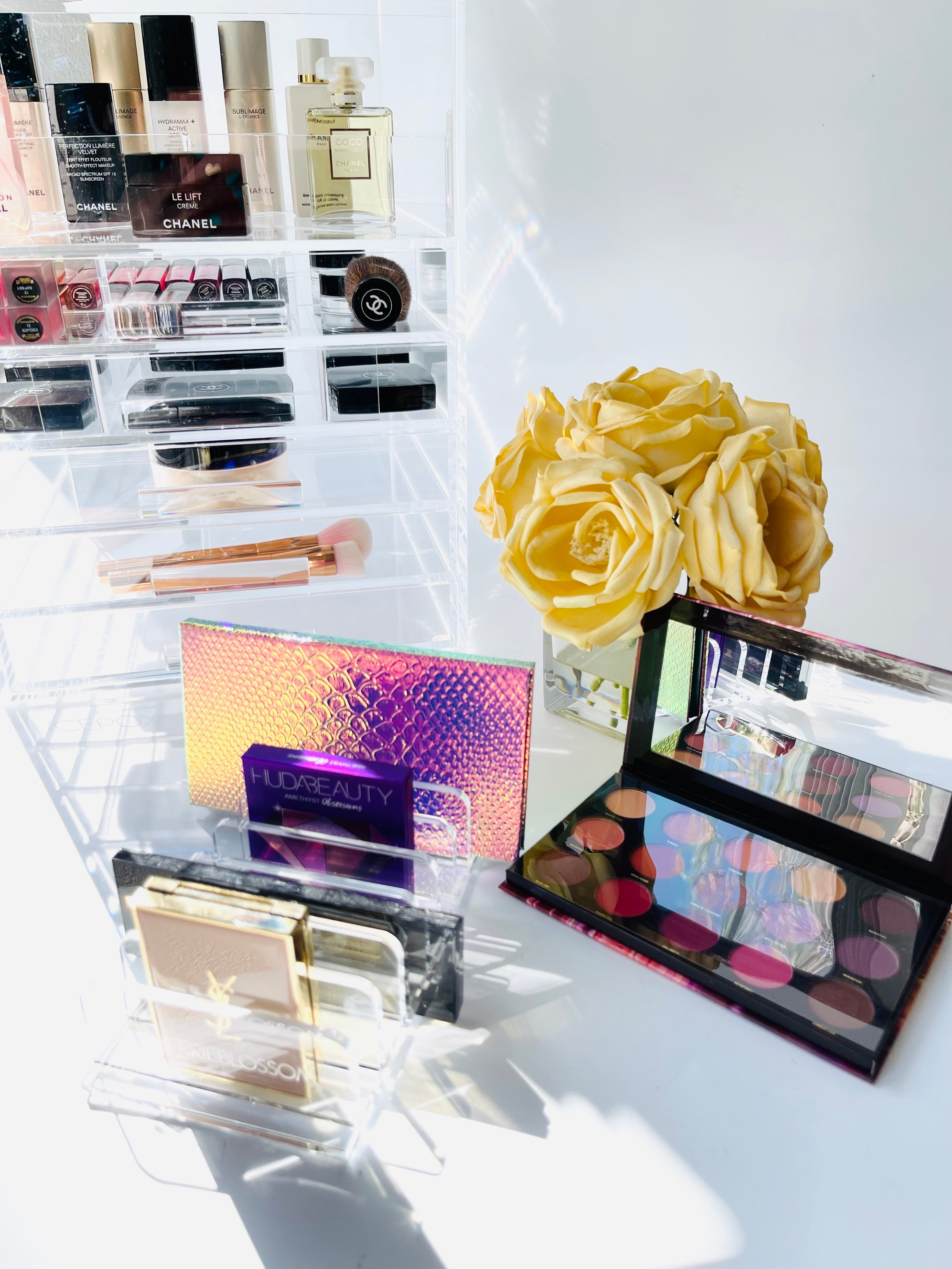 The ICEbOX WIDE is the style you've seen with so many celebrities! It boasts a sleek, sexy, and contemporary design. The minimalist appeal and clear aesthetic blends perfectly with any decor and streamlines all the clutter in your glam space. The ICEbOX has the functionality of a department store makeup counter in your very own home! You'll feel the Hollywood glamour stepping into your vanity area each and every morning. This baby can hold a boat load of beauty products!