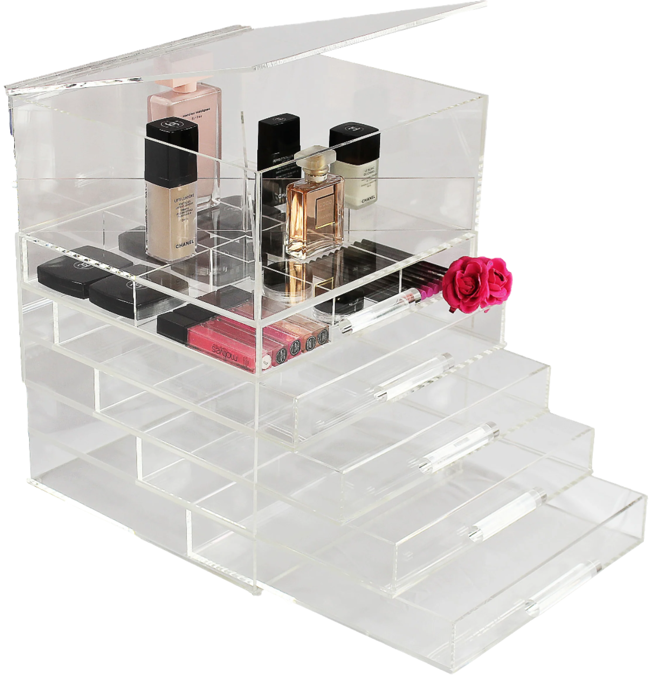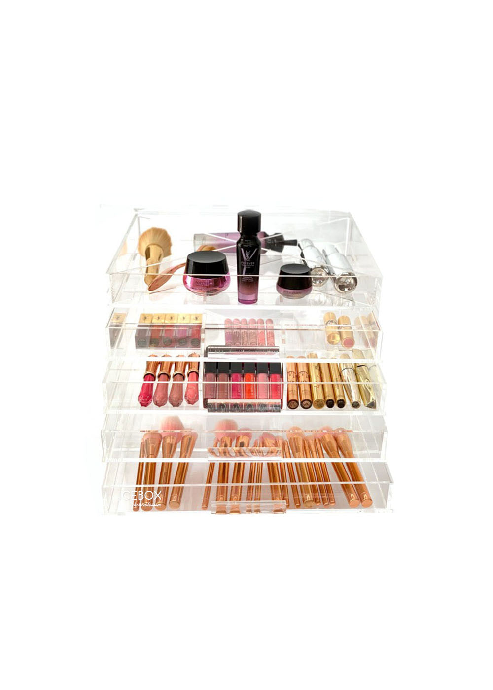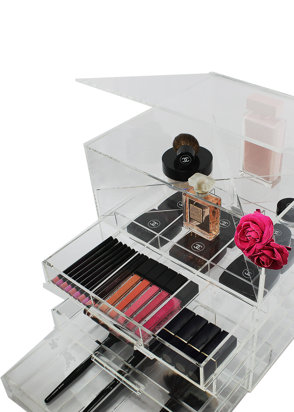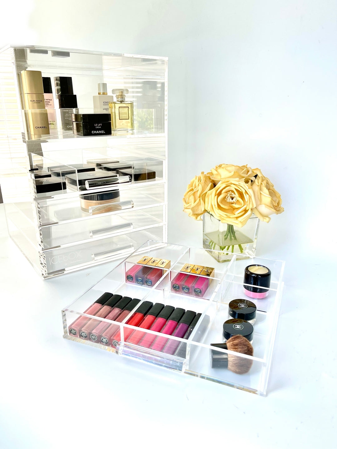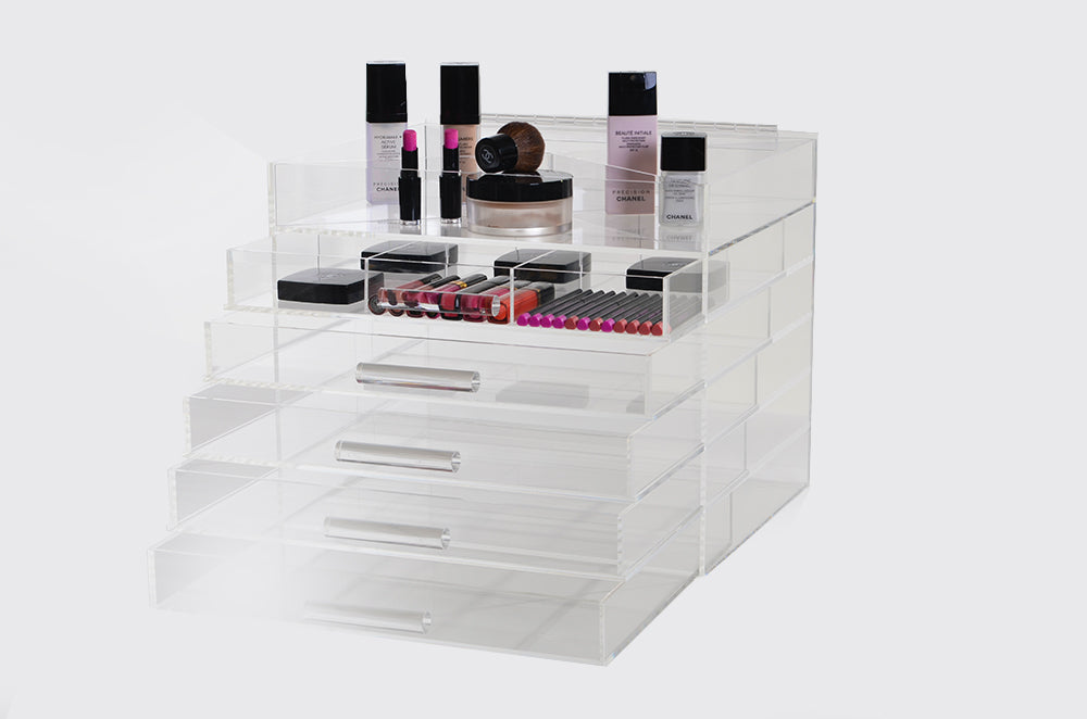 Crafted with uncompromising precision, the Sherrieblossom collection of crystal-clear acrylic organizers is where beauty meets design. Renowned among the world’s elite makeup artists and tastemakers, each piece is a masterclass in form and function.